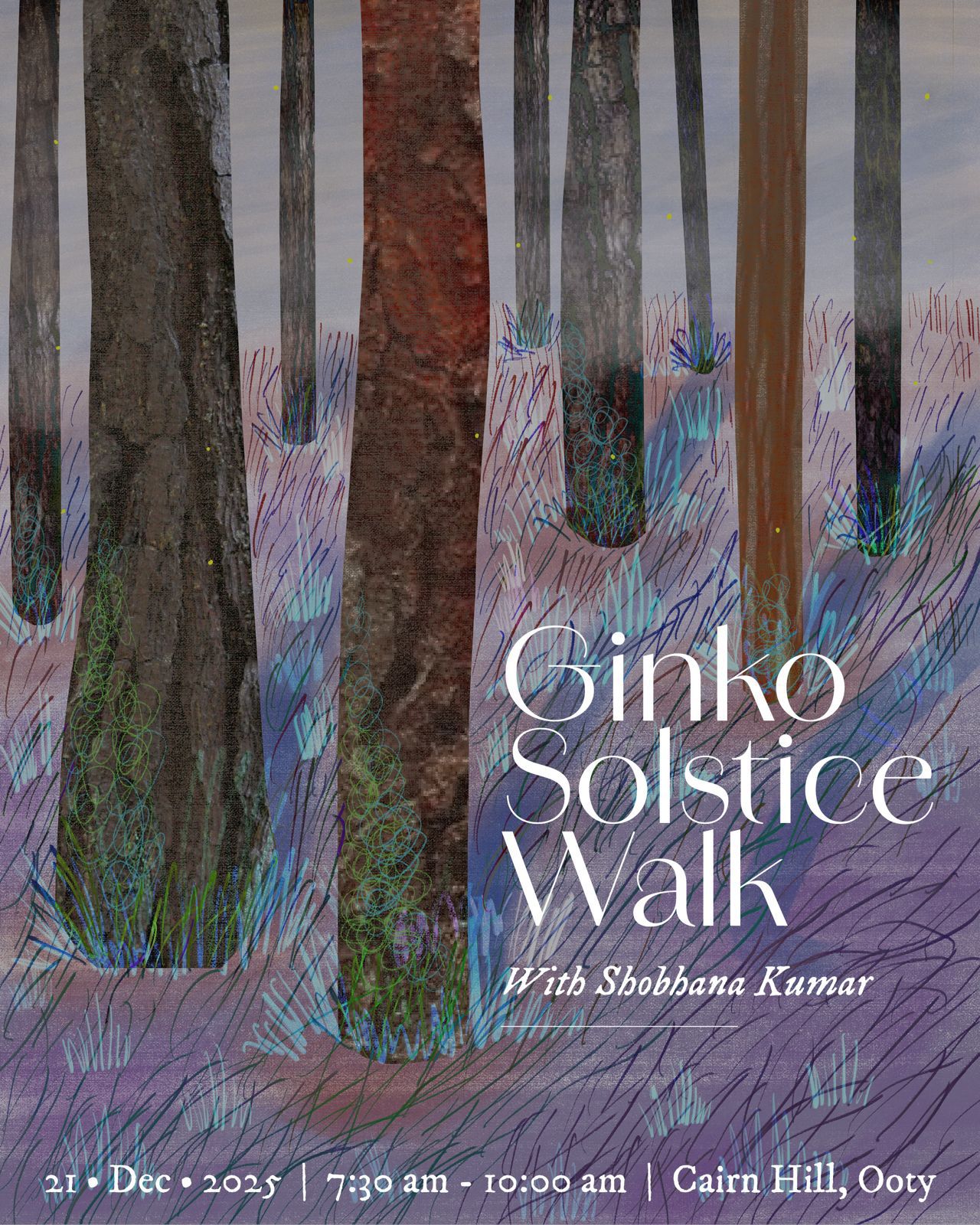 A reflective, guided solstice walk led by poet and writer Shobhana Kumar through Cairn Hill, Ooty — an experience of listening, walking, and writing haiku in conversation with the landscape.